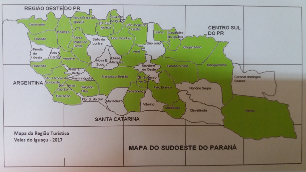 Conforme publicação no site do Ministério do Turismo, foi concluído o novo Mapa Brasileiro do Turismo. Do Sudoeste, todos os 27 municípios que aderiram ao PRT – Programa da Regionalização do Turismo, articulados pela Agencia enquanto a IGR Vales do Iguaçu, foram confirmados pelo MTUR no novo Mapa. Estes municípios passam a compor a Região Turística Vales do Iguaçu, conforme mapa abaixo.