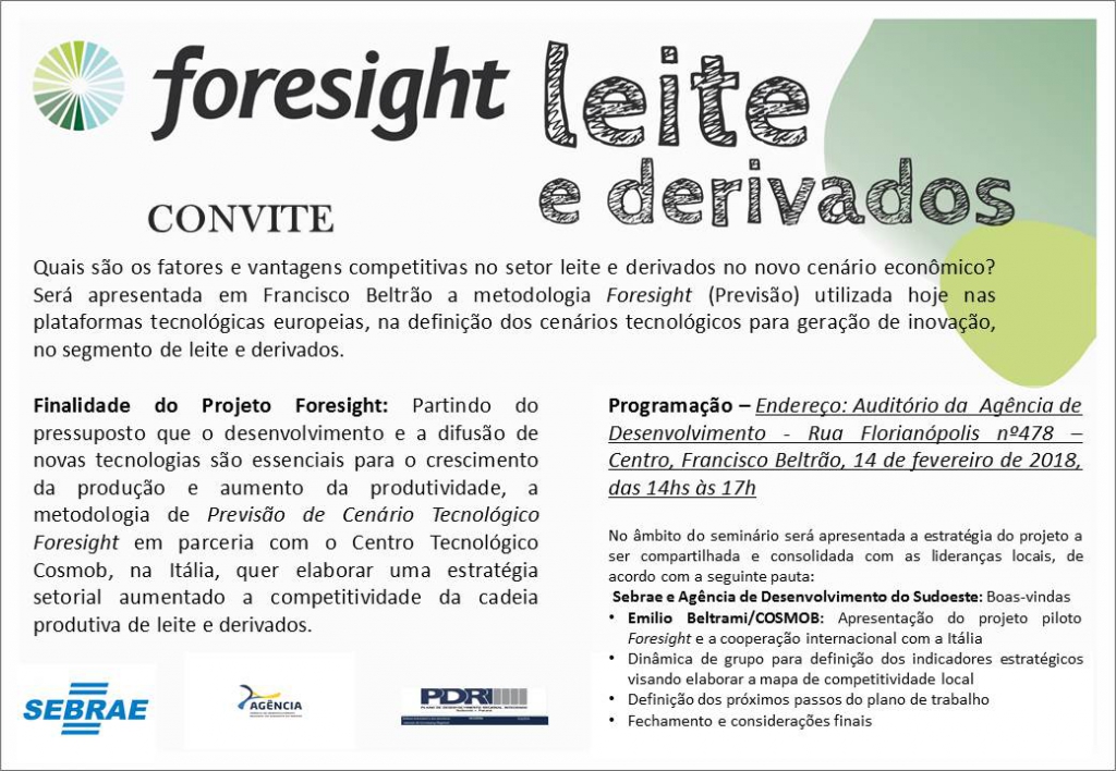 No dia 19 de fevereiro, venha participar do Foresight. Tema: Leite e derivados