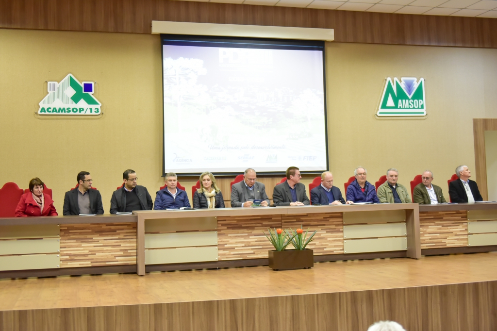 Formou-se a mesa de honra e seguiram-se vários pronunciamentos. “O nosso maior desafio, agora, é manter na implementação do plano a mesma pegada que ele teve nesses sete anos de elaboração”, disse o prefeito de Salgado Filho, Helton Pfeifer (PSDB), representando a Amsop. Nesta linha, falou o vice-presidente da Agência de Desenvolvimento Regional, Leocir Sartor: “Temos que pedir para mais pessoas abraçar este plano e fazer acontecer na prática”.