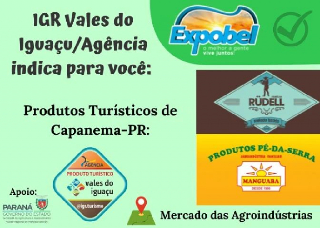 á anotou na Agenda? De 05 a 13 de março, na Expobel, visite o Mercado das Agroindústrias e leve pra casa toda a doçura dos produtos turísticos de Capanema