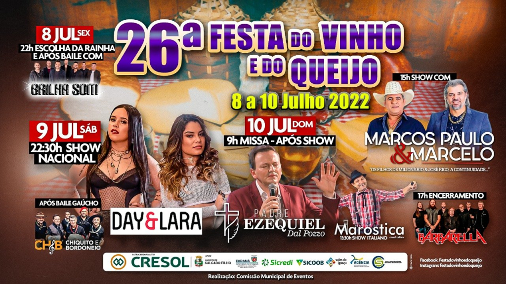 26ª festa do vinho e do queijo, de 8 a 10 de julho de 2022.