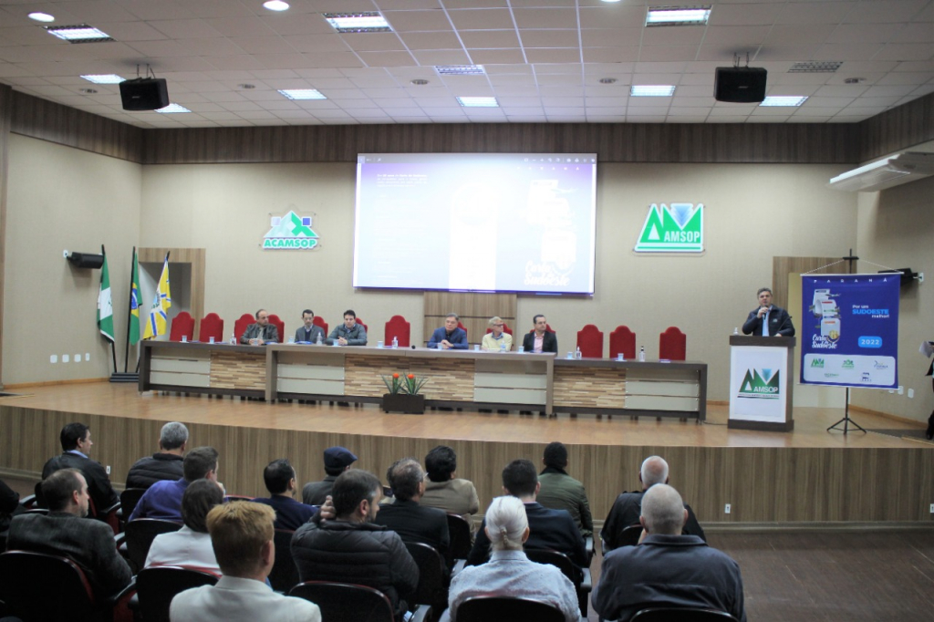 O auditório da Associação dos Municípios do Sudoeste do Paraná (Amsop) recebeu, nesta terça-feira, 06/09, prefeitos, ex-prefeitos, vereadores e lideranças do setor privado para o lançamento da edição de 20 anos da Carta do Sudoeste. Nesta edição, além da Amsop, subscrevem a Carta, também, a Associação das Câmaras Municipais do Sudoeste do Paraná (Acamsop), Agência de Desenvolvimento Regional do Sudoeste do Paraná, Coordenadoria das Associações Comerciais e Empresariais do Sudoeste do Paraná (Cacispar) e Instituto Regional de Desenvolvimento Econômico e Social (Irdes).